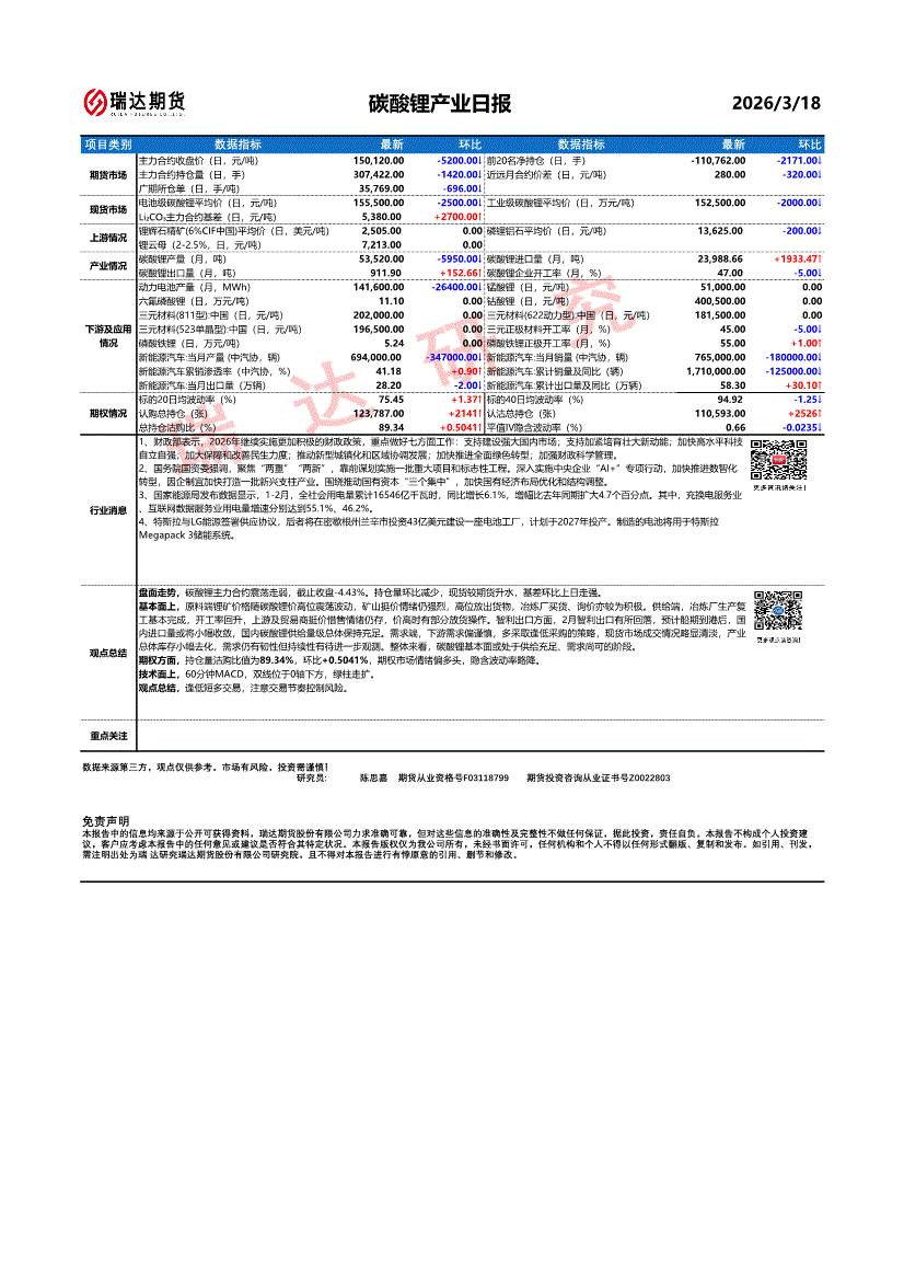 瑞达期货-碳酸锂产业日报-260318