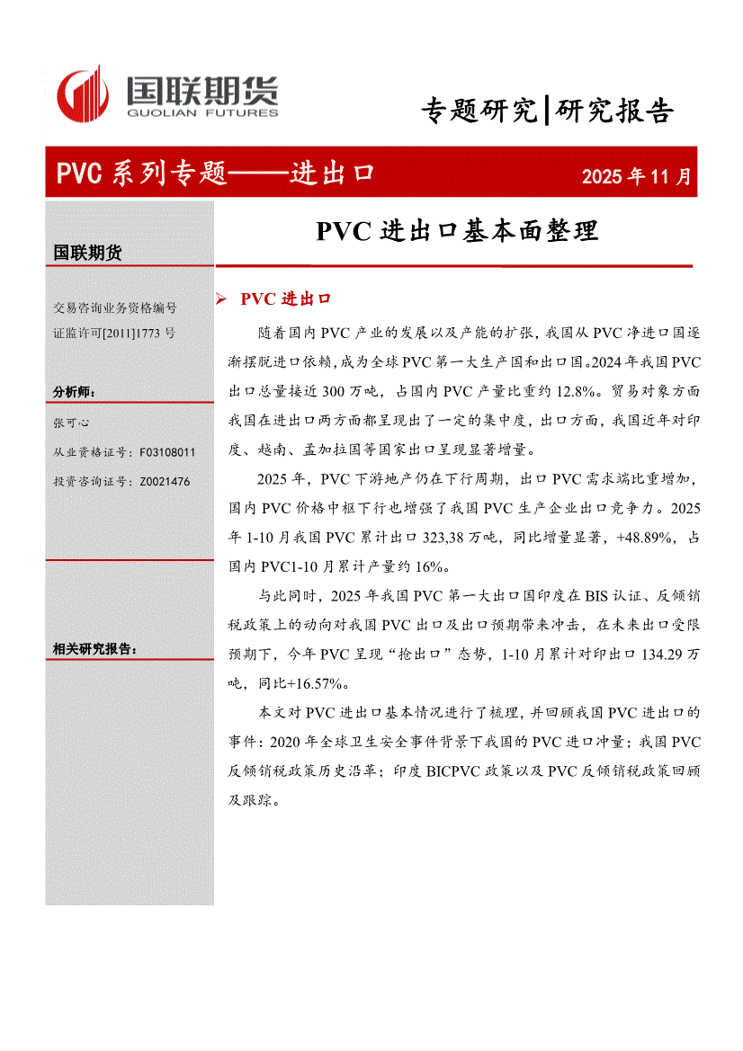 国联期货-PVC系列专题——进出口:PVC进出口基本面整理-251127