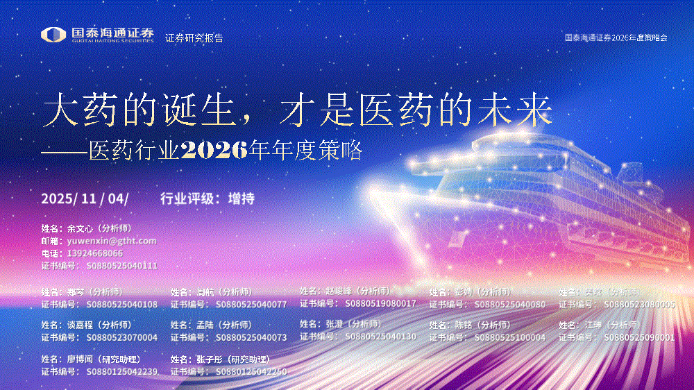 医药行业:国泰海通证券-医药行业2026年年度策略:大药的诞生,才是医药的未来-251104