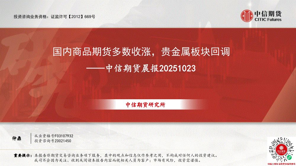 中信期货-晨报:国内商品期货多数收涨,贵金属板块回调-251023