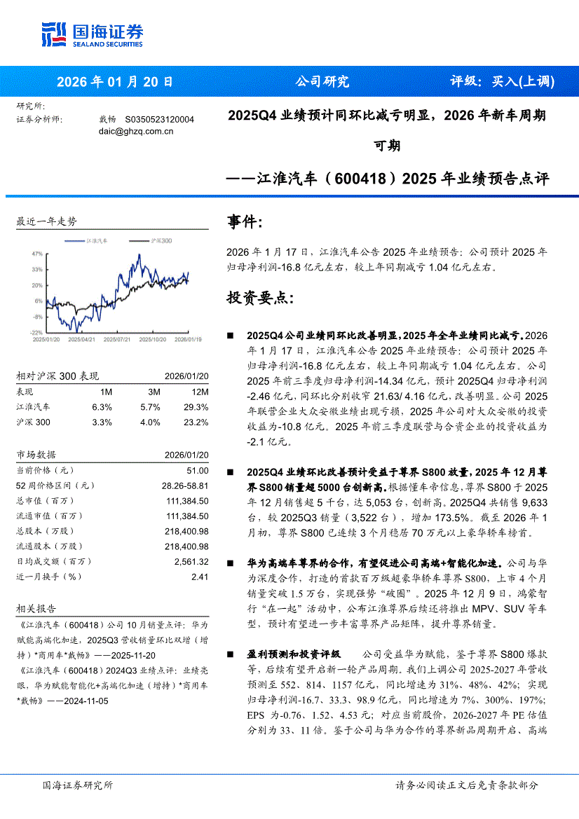 国海证券-江淮汽车-600418-2025年业绩预告点评:2025Q4业绩预计同环比减亏明显,2026年新车周期可期-260120