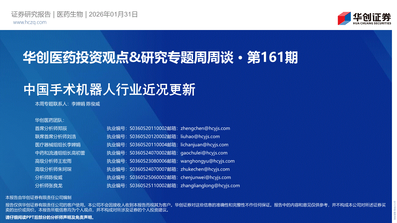 华创证券-华创医药行业投资观点&研究专题周周谈·第161期:中国手术机器人行业近况更新-260131