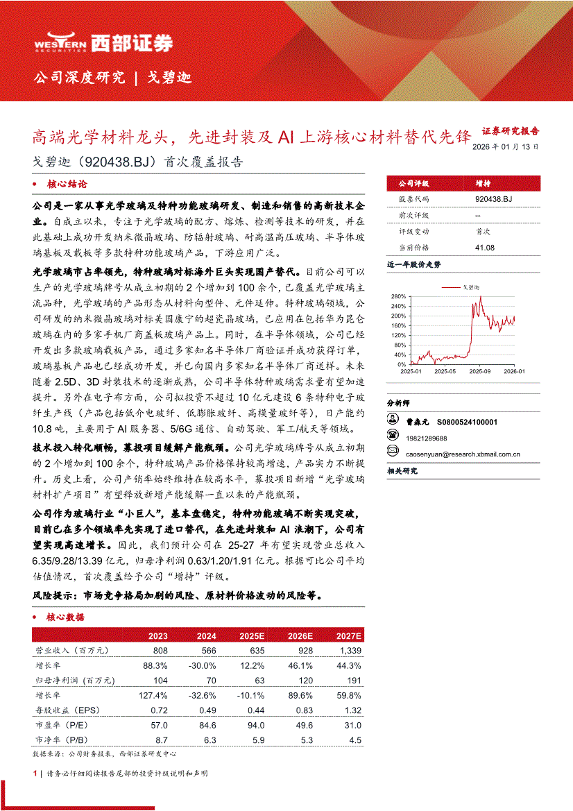 戈碧迦:西部证券-戈碧迦-920438-首次覆盖报告:高端光学材料龙头,先进封装及AI上游核心材料替代先锋-260113