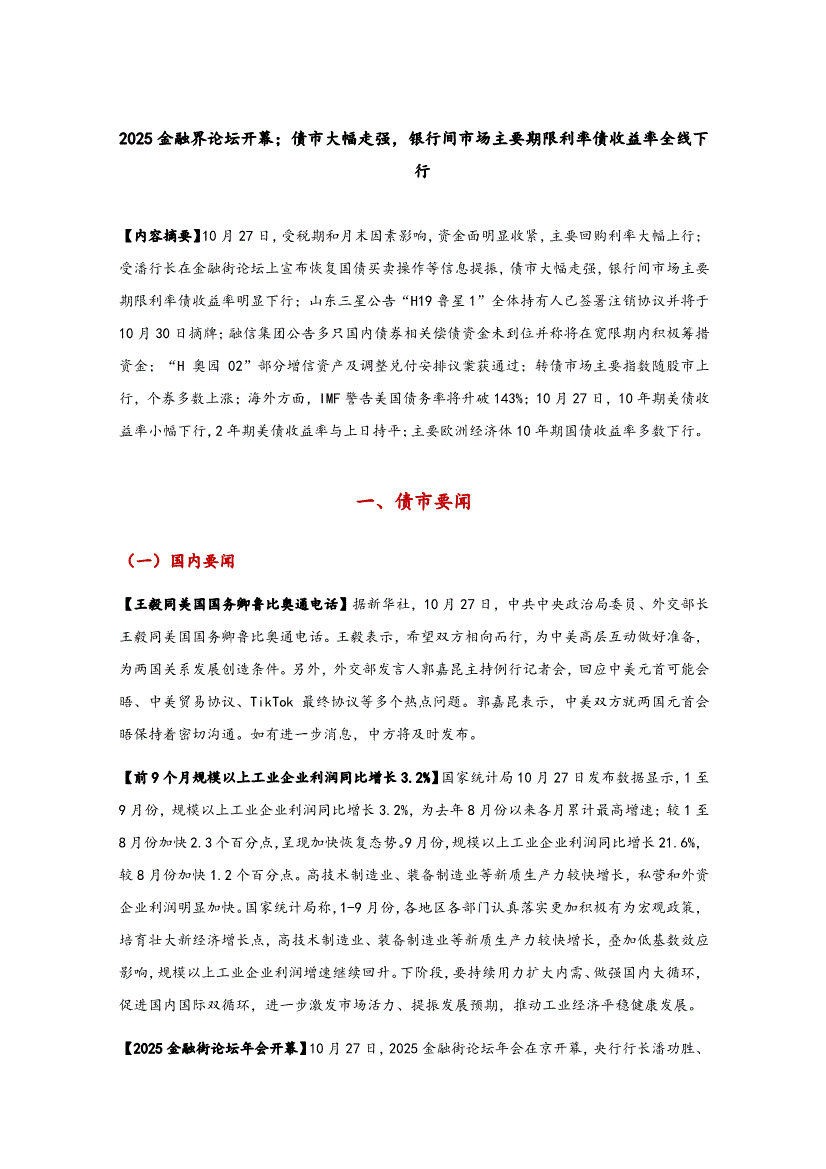 东方金诚-2025金融界论坛开幕;债市大幅走强,银行间市场主要期限利率债收益率全线下行-251029