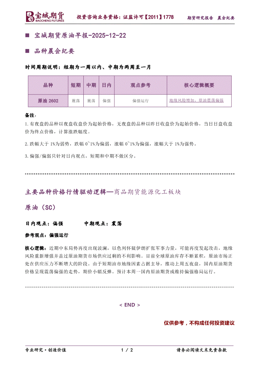宝城期货-橡胶甲醇原油日报:偏多因素支撑,能化偏强运行-251222