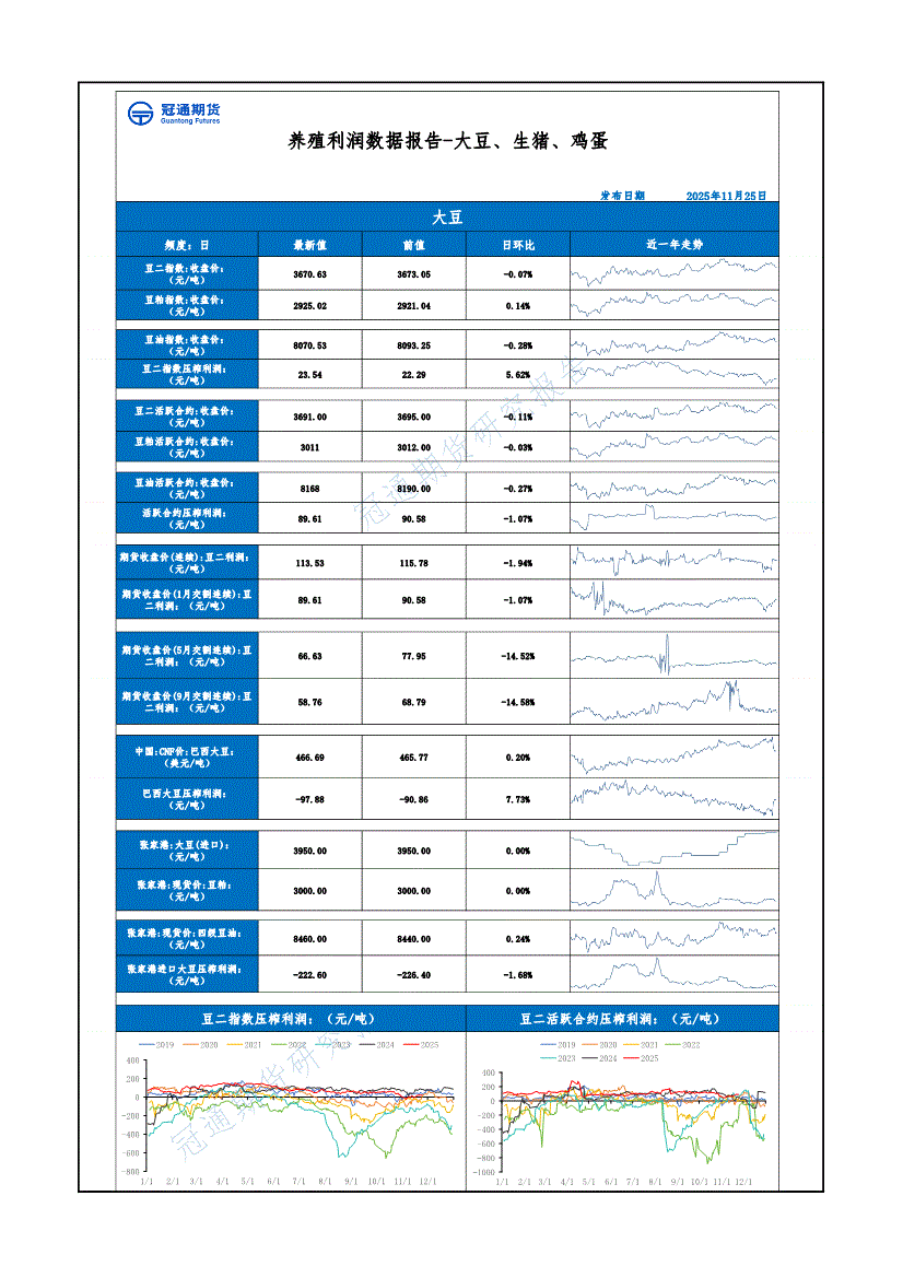 冠通期货-养殖利润数据报告:大豆、生猪、鸡蛋-251125