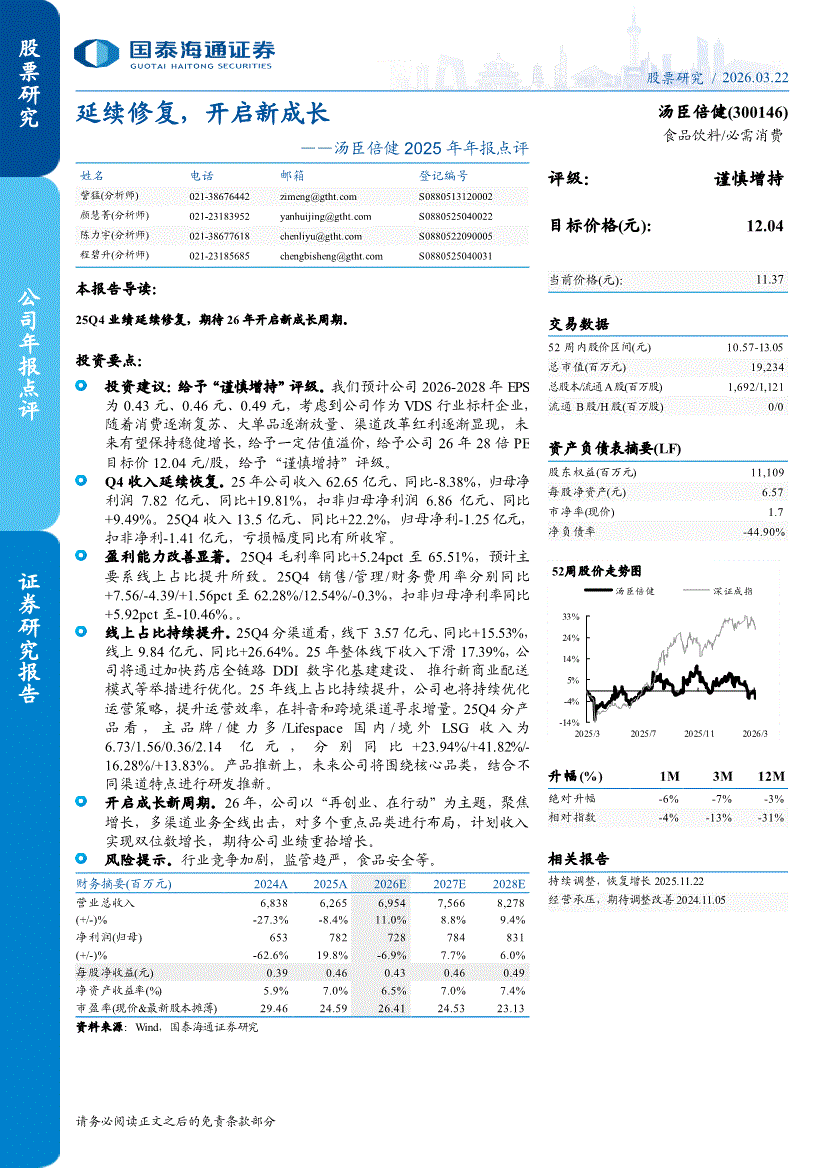 汤臣倍健:国泰海通证券-汤臣倍健-300146-2025年年报点评:延续修复,开启新成长-260322