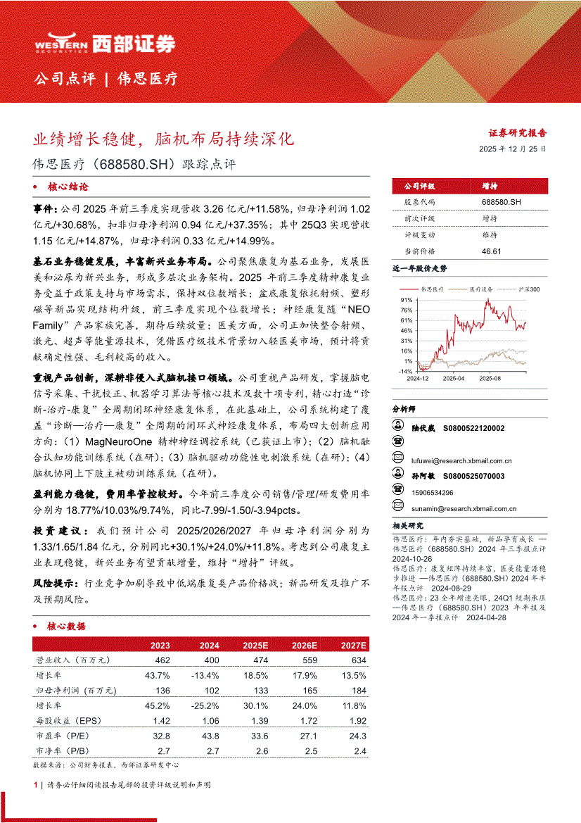 伟思医疗:西部证券-伟思医疗-688580-跟踪点评:业绩增长稳健,脑机布局持续深化-251225