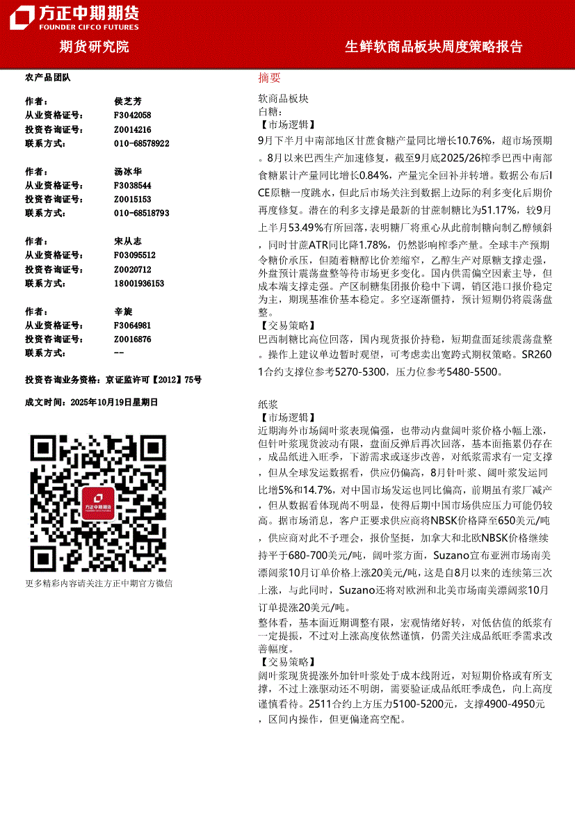 方正中期期货-生鲜软商品板块周度策略报告-251019