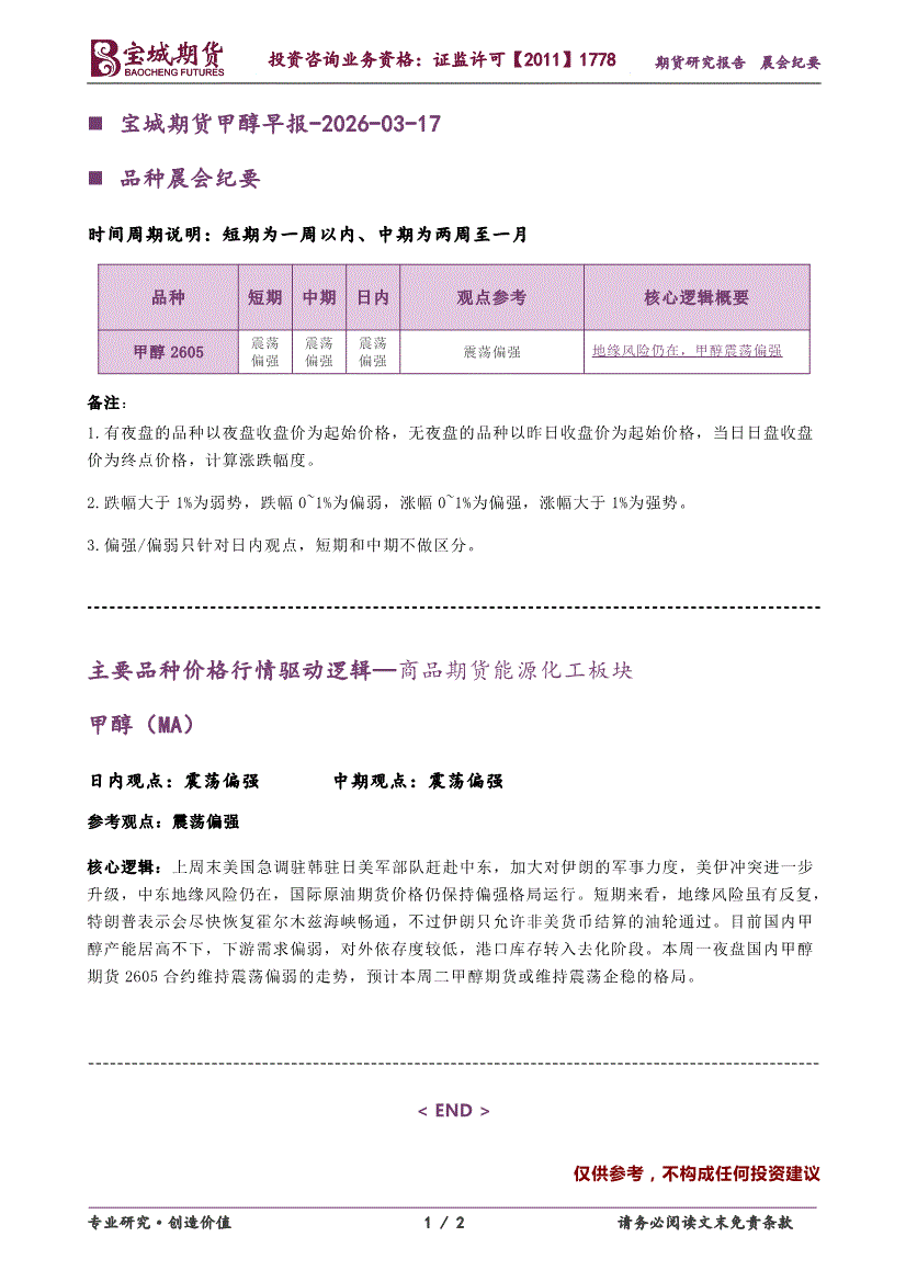 宝城期货-甲醇早报-260317