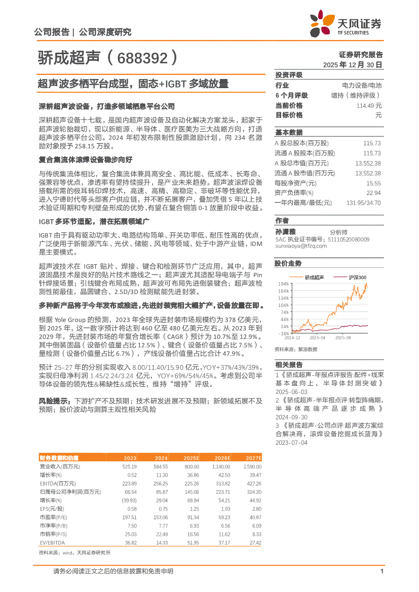 骄成超声:天风证券-骄成超声-688392-超声波多栖平台成型,固态+IGBT多域放量-251230