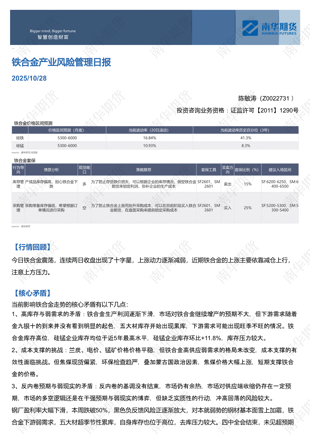 南华期货-螺纹钢、热卷产业风险管理日报-251017