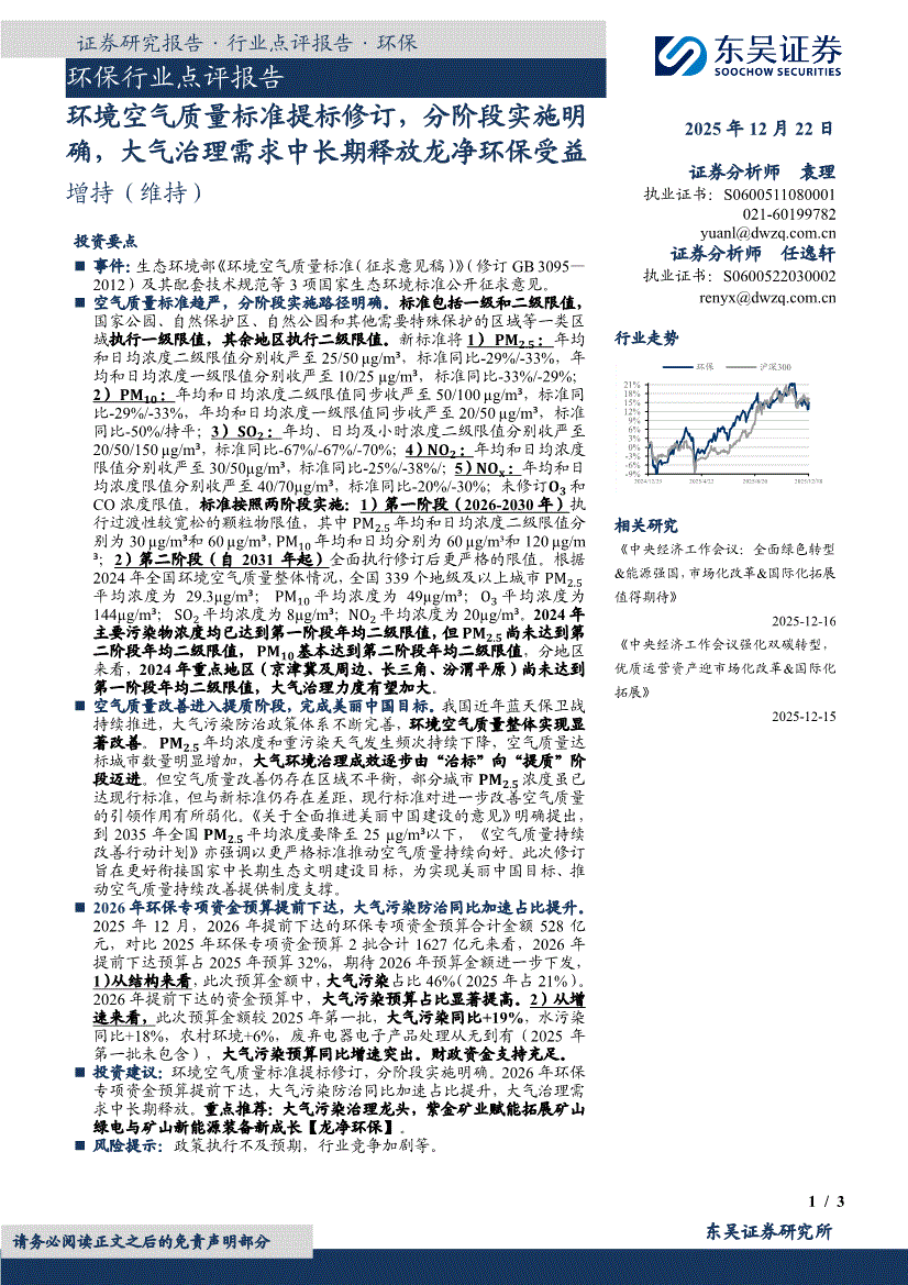 环保行业:东吴证券-环保行业点评报告:环境空气质量标准提标修订,分阶段实施明确,大气治理需求中长期释放龙净环保受益-251222