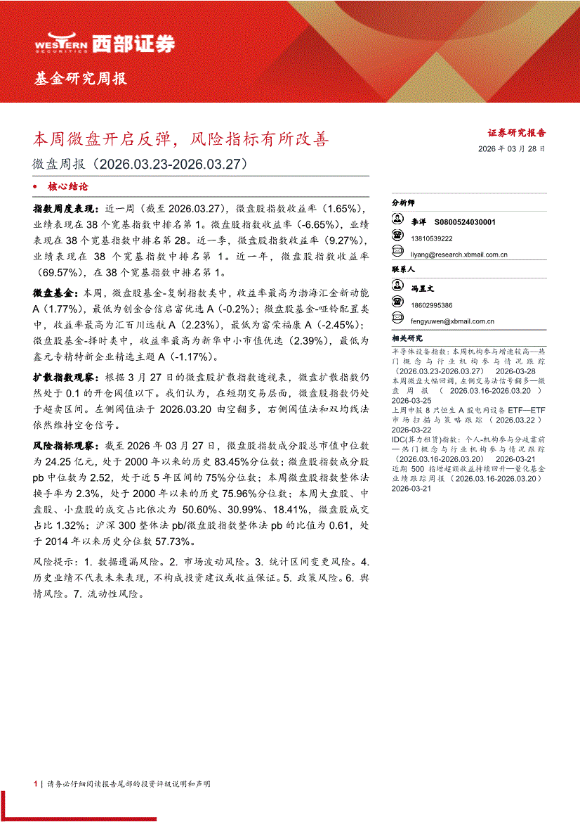 西部证券-微盘周报:本周微盘开启反弹,风险指标有所改善-260328