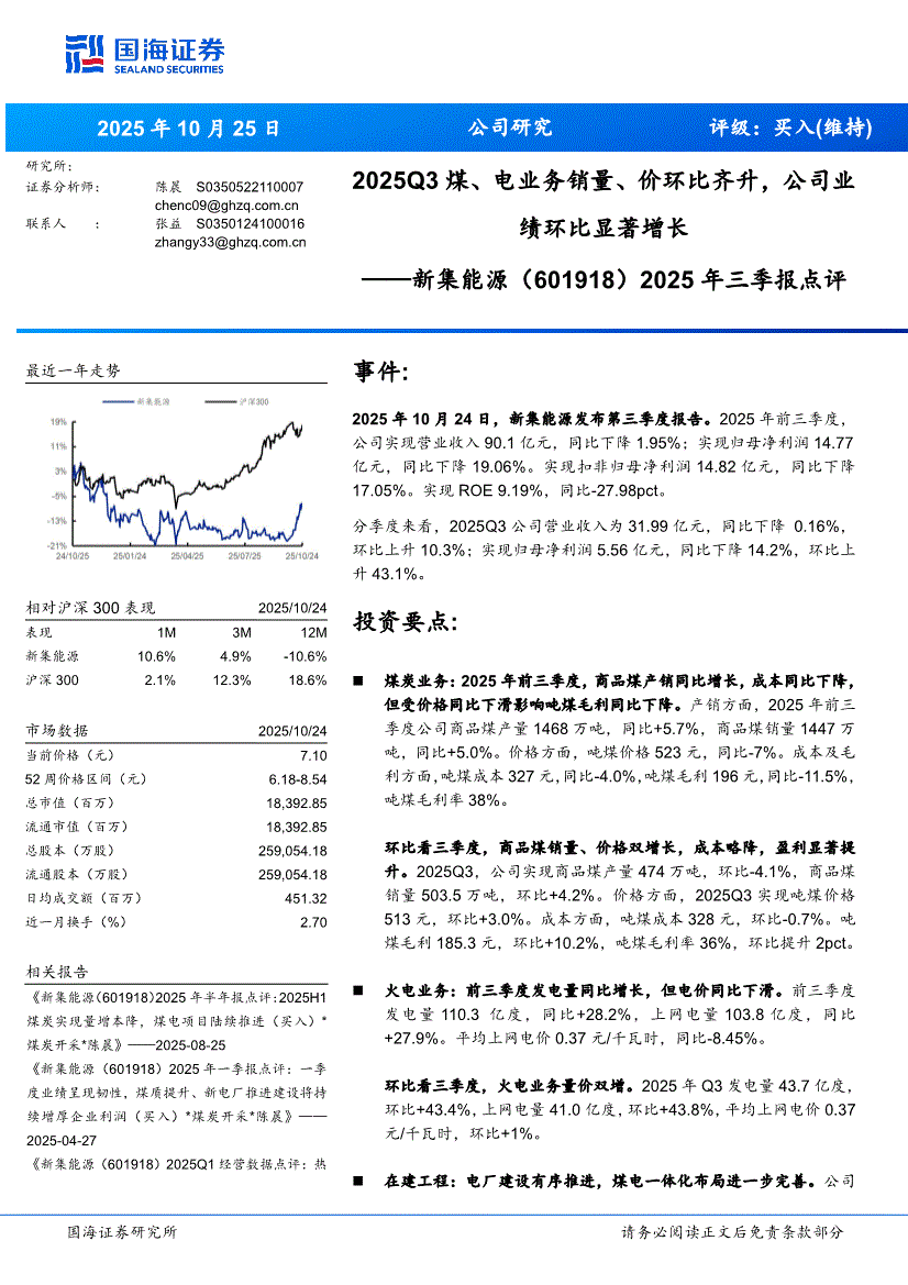 新集能源:国海证券-新集能源-601918-2025年三季报点评:2025Q3煤、电业务销量、价环比齐升,公司业绩环比显著增长-251025