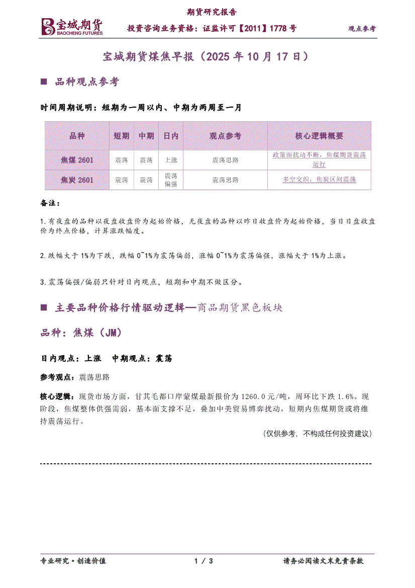 宝城期货-煤焦早报-251017