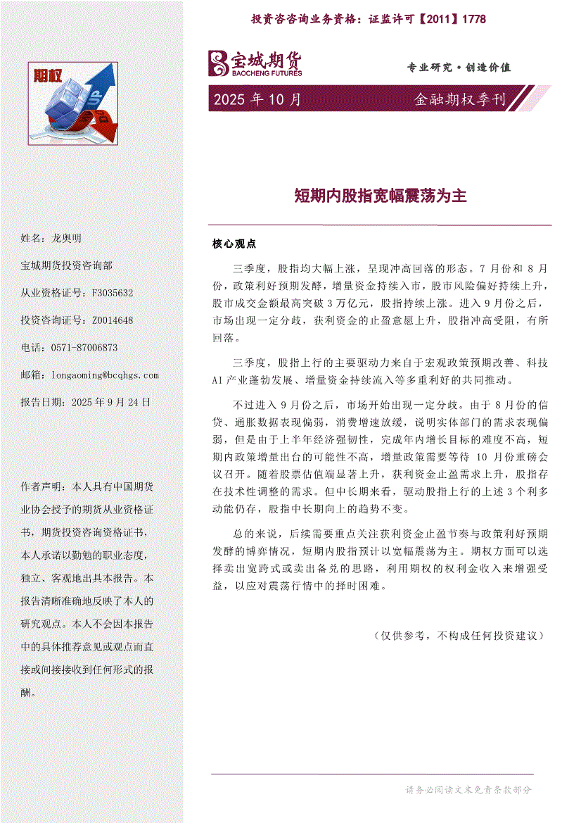 宝城期货-金融期权季刊:短期内股指宽幅震荡为主-250924