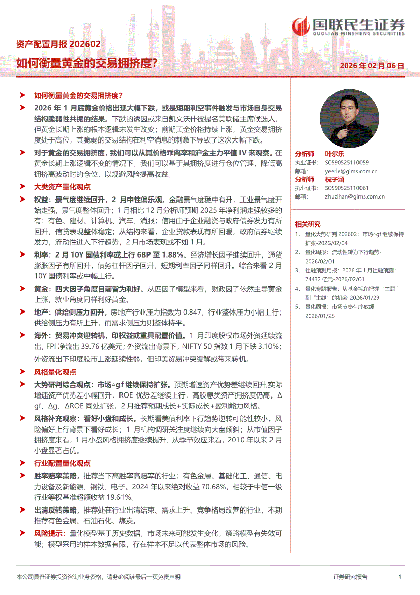 国联民生证券-资产配置月报202602:如何衡量黄金的交易拥挤度?-260206