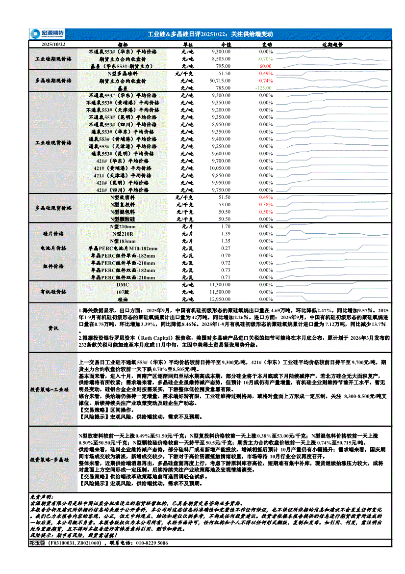 宏源期货-有色金属周报~工业硅&多晶硅:暂无明显变动,价格维持区间整理-251028