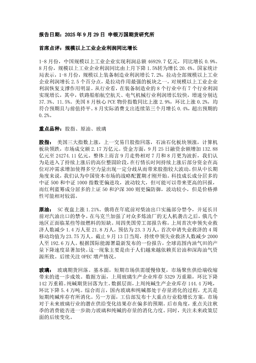 申银万国期货-早间评论-250929