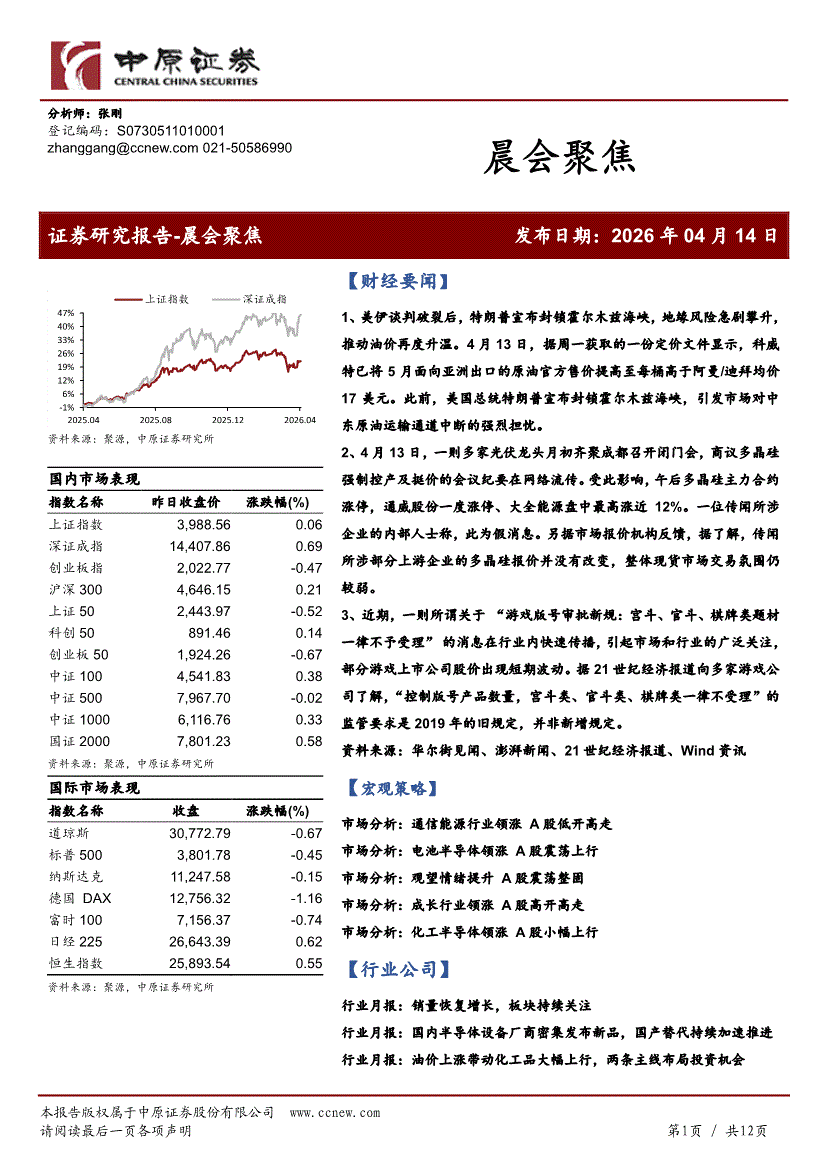 招商证券-全球产业趋势跟踪周报:海内外厂商密集发布新版模型,光通信行业景气度持续攀升-260413