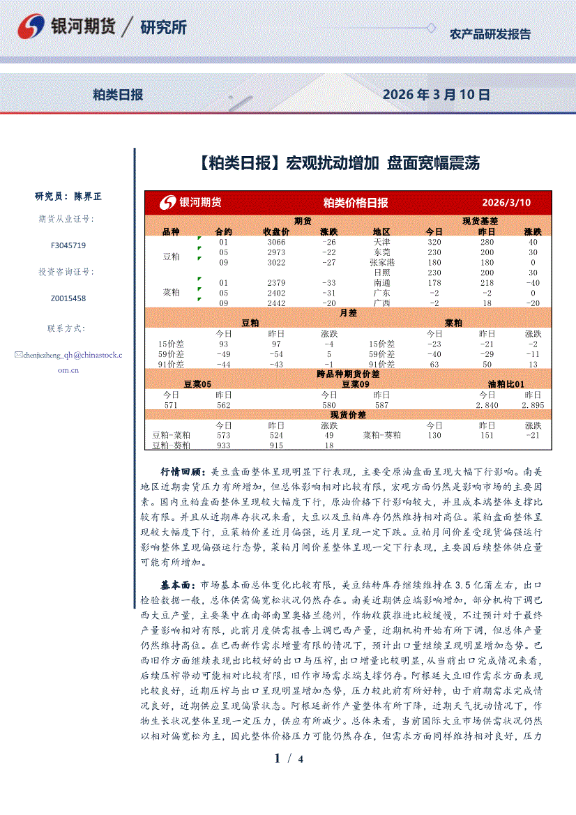 银河期货-粕类日报:宏观扰动增加,盘面宽幅震荡-260310