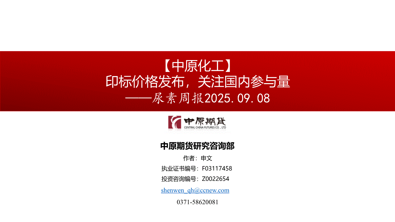 中原期货-尿素周报:印标价格发布,关注国内参与量-250908