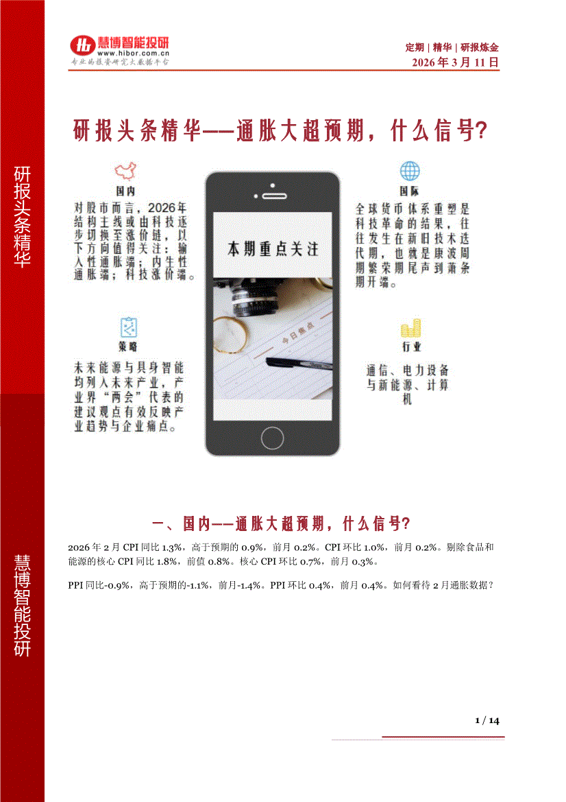 慧博智能投研-慧博研报炼金之研报头条精华:通胀大超预期,什么信号?-260311