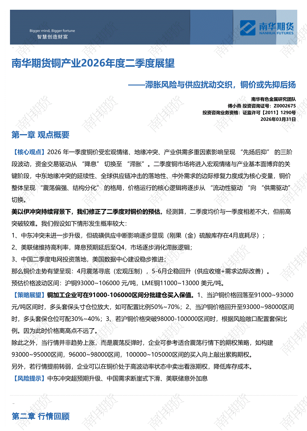 南华期货-铜产业2026年度二季度展望:滞胀风险与供应扰动交织,铜价或先抑后扬-260331