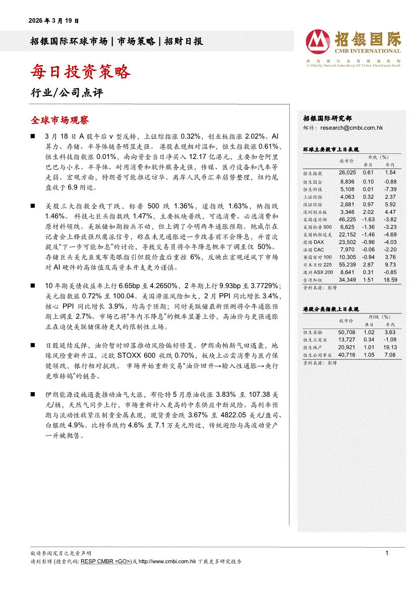 新华汇富-汇富快讯:香港及中國市場日報-260319