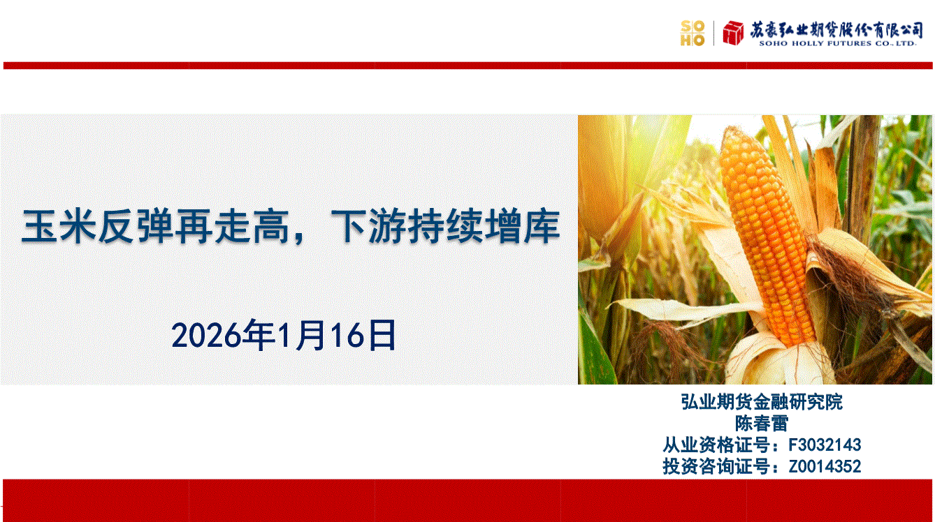 弘业期货-玉米反弹再走高,下游持续增库-260116