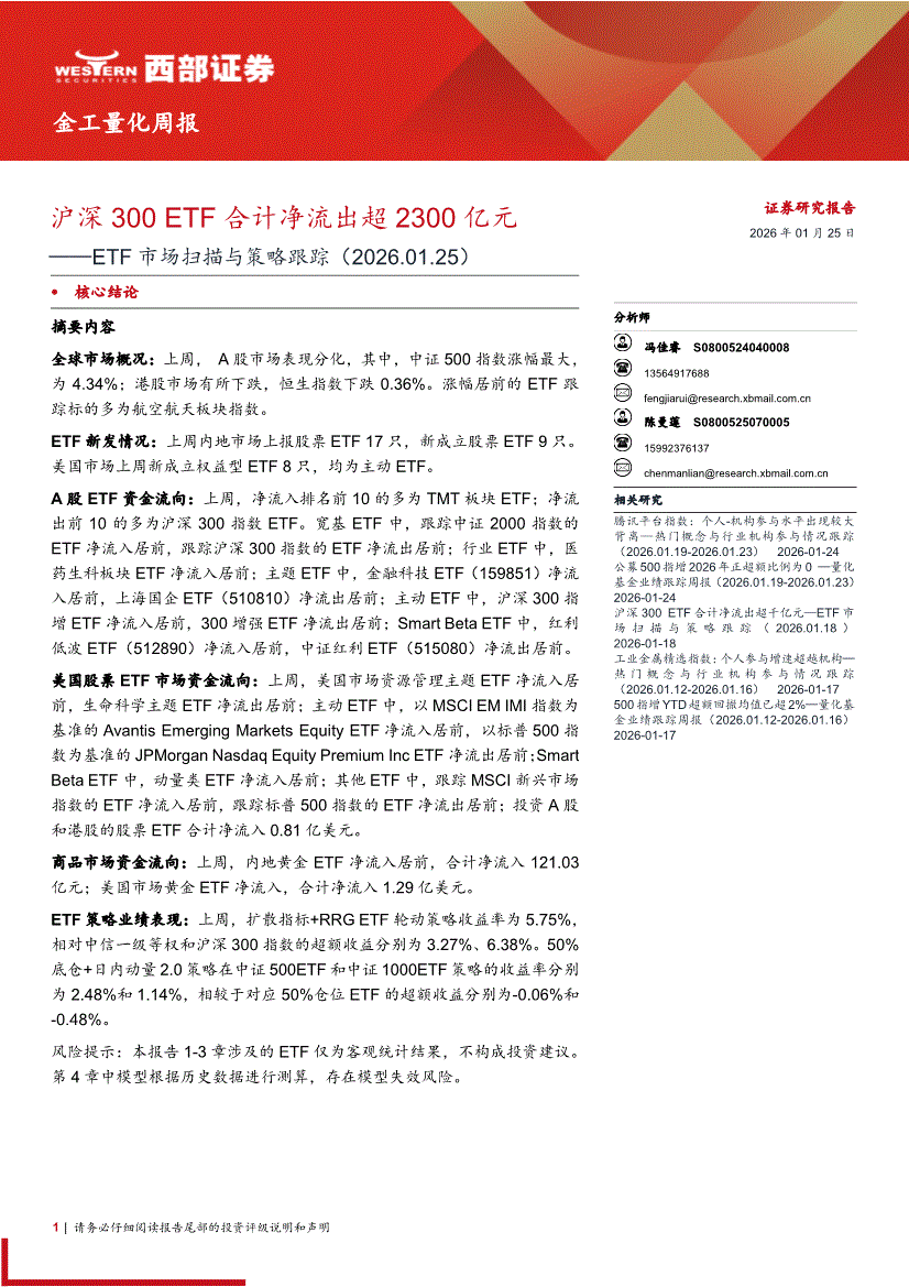 西部证券-ETF市场扫描与策略跟踪:沪深300 ETF合计净流出超2300亿元-260125