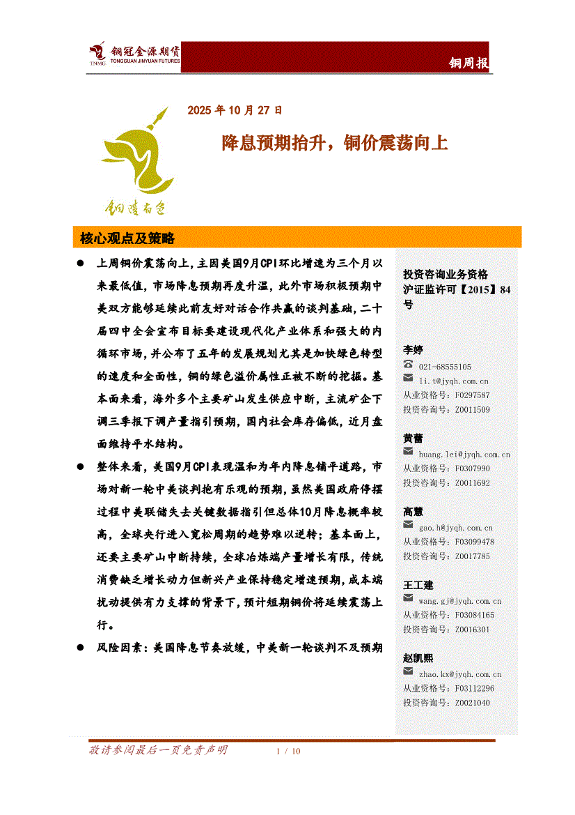 铜冠金源期货-铜周报:降息预期抬升,铜价震荡向上-251027