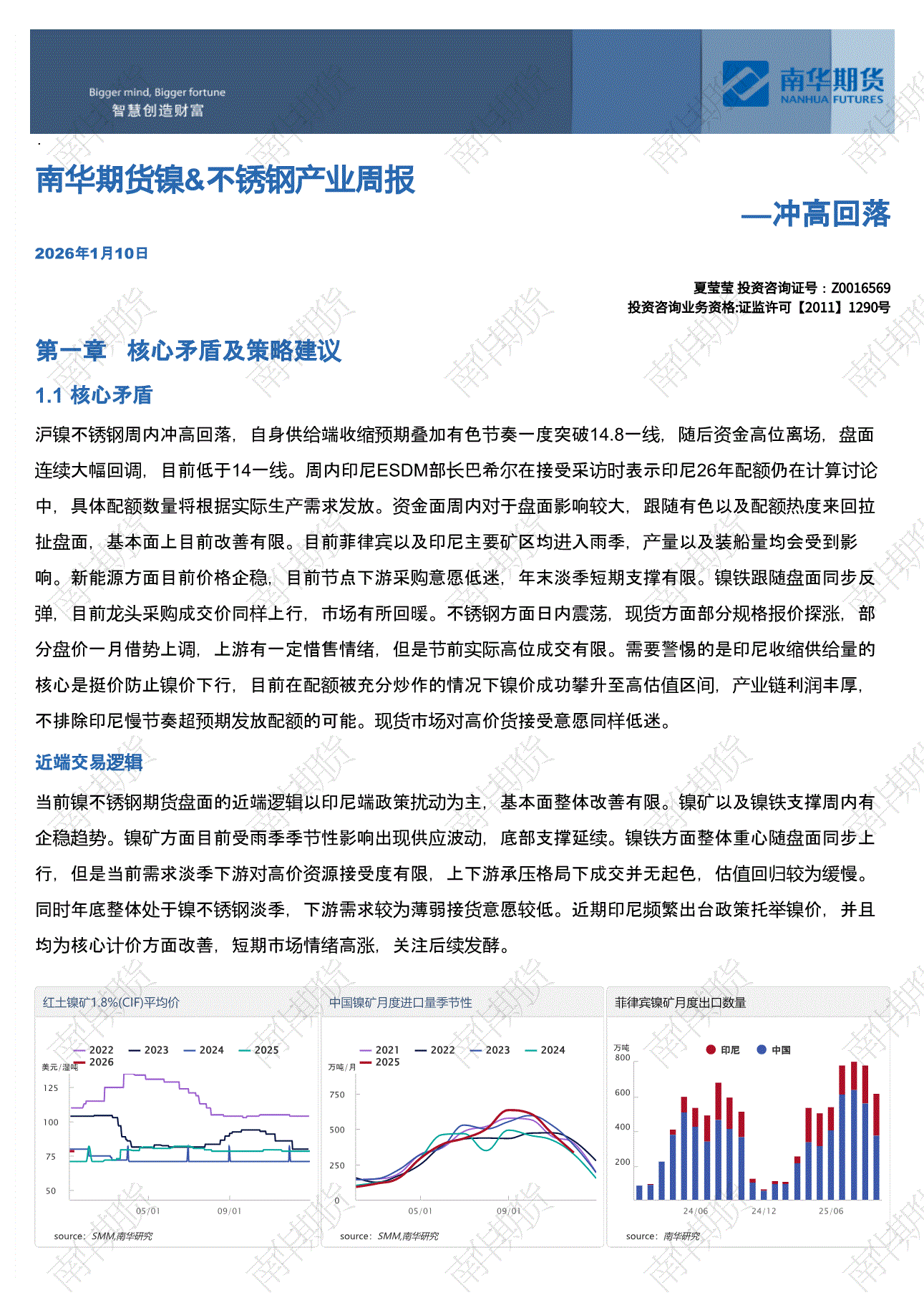 南华期货-镍&不锈钢产业周报:冲高回落-260110