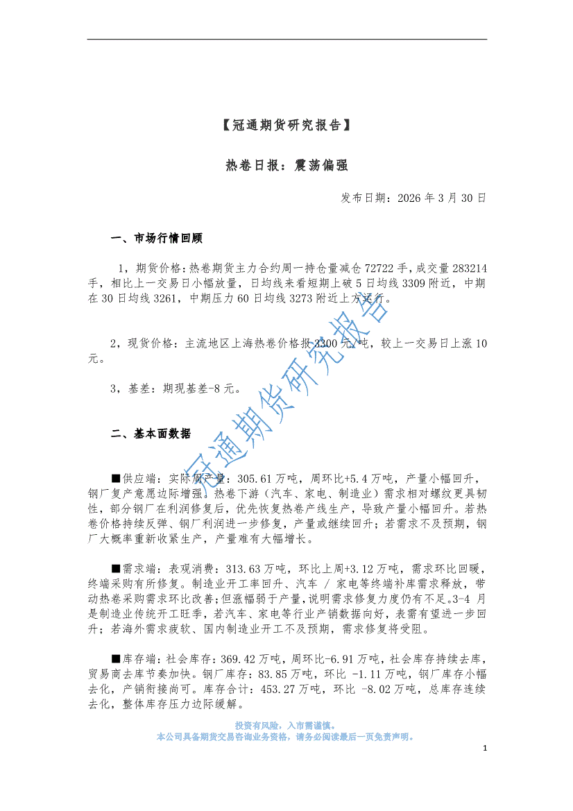 冠通期货-热卷日报:期价小幅回调、供需紧平衡,旺季支撑震荡偏强-260402