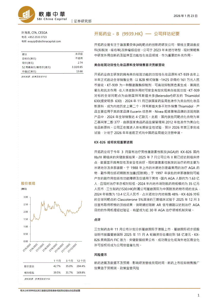 开拓药业~B:软库中华-开拓药业~B-9939.HK-公司拜访纪要-260125