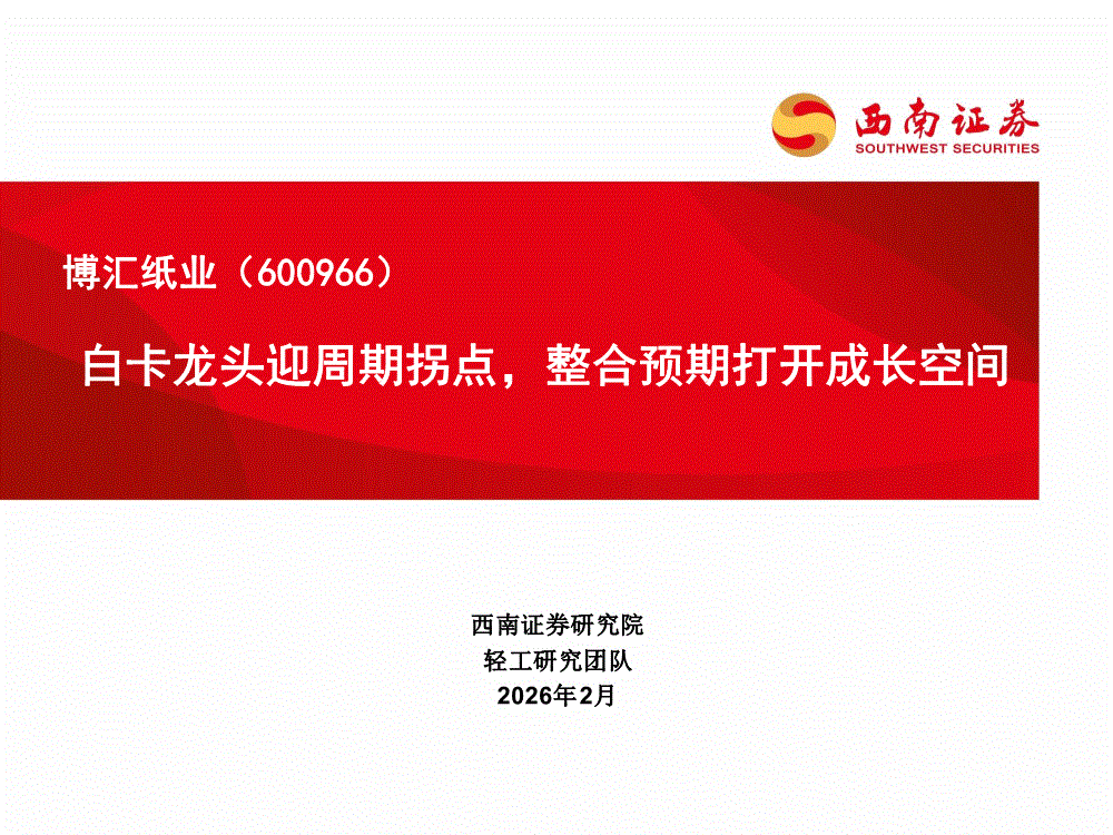 博汇纸业:西南证券-博汇纸业-600966-白卡龙头迎周期拐点,整合预期打开成长空间-260224