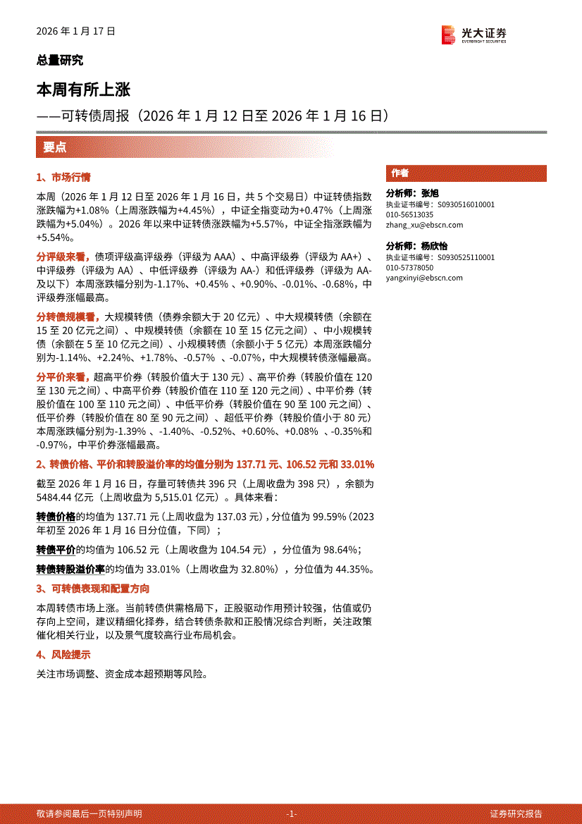 光大证券-可转债周报(2025年12月22日至2025年12月26日):本周继续上涨-251227