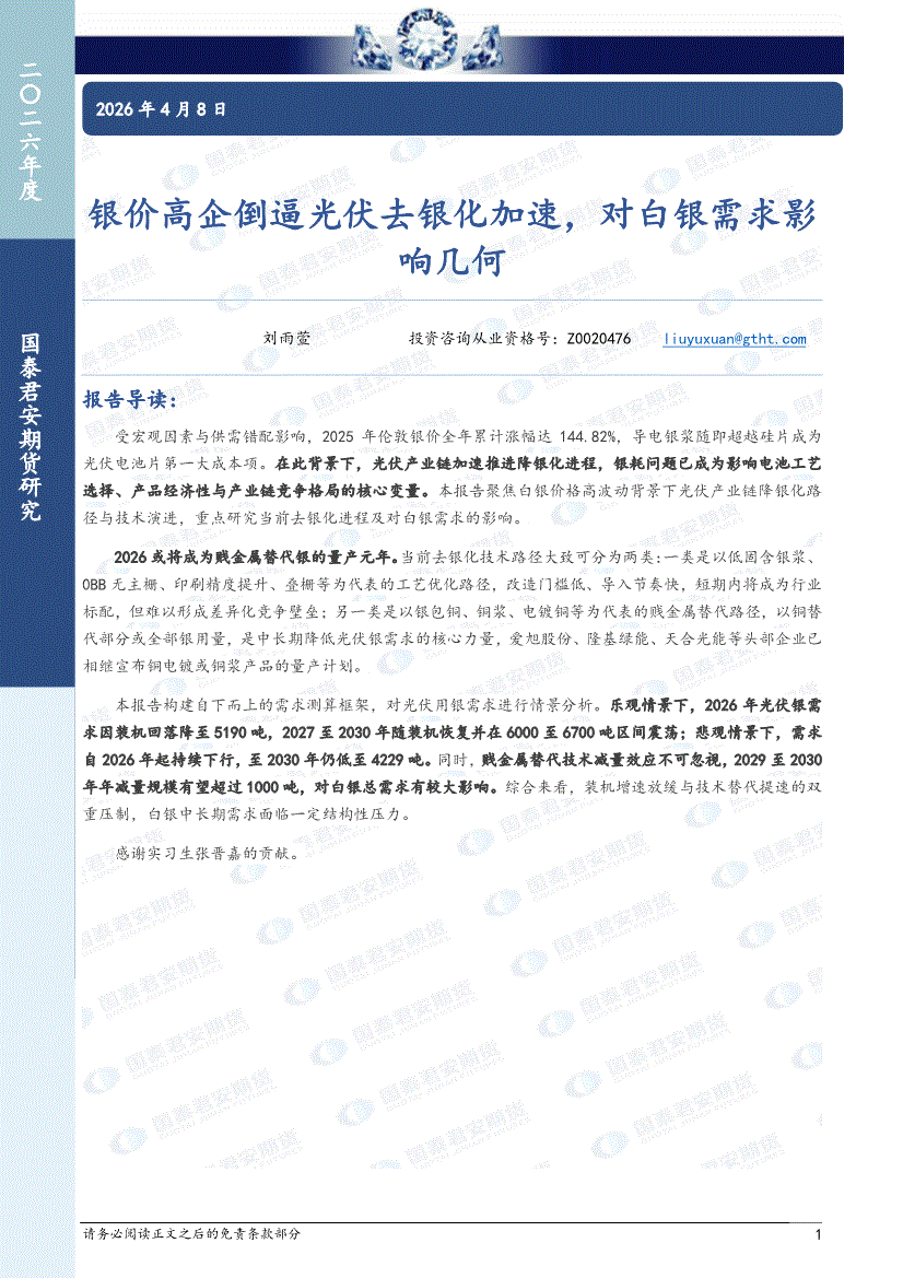 国泰君安期货-银价高企倒逼光伏去银化加速,对白银需求影响几何-260408