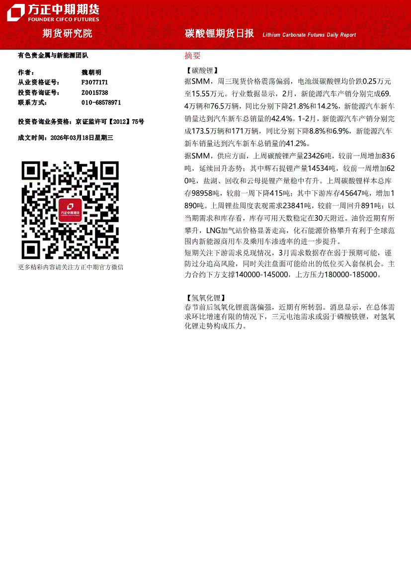 方正中期期货-碳酸锂期货日报-260318