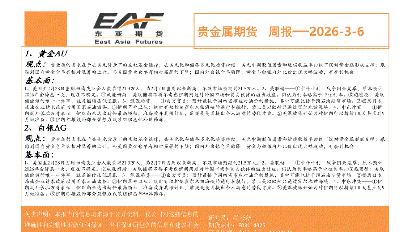 上海东亚期货-贵金属期货周报-260306