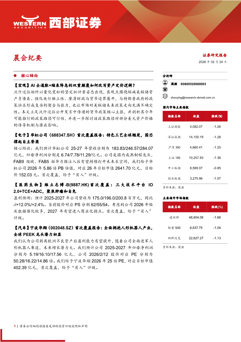 华西证券-估值周报:最新A股、港股、美股估值怎么看?-260222