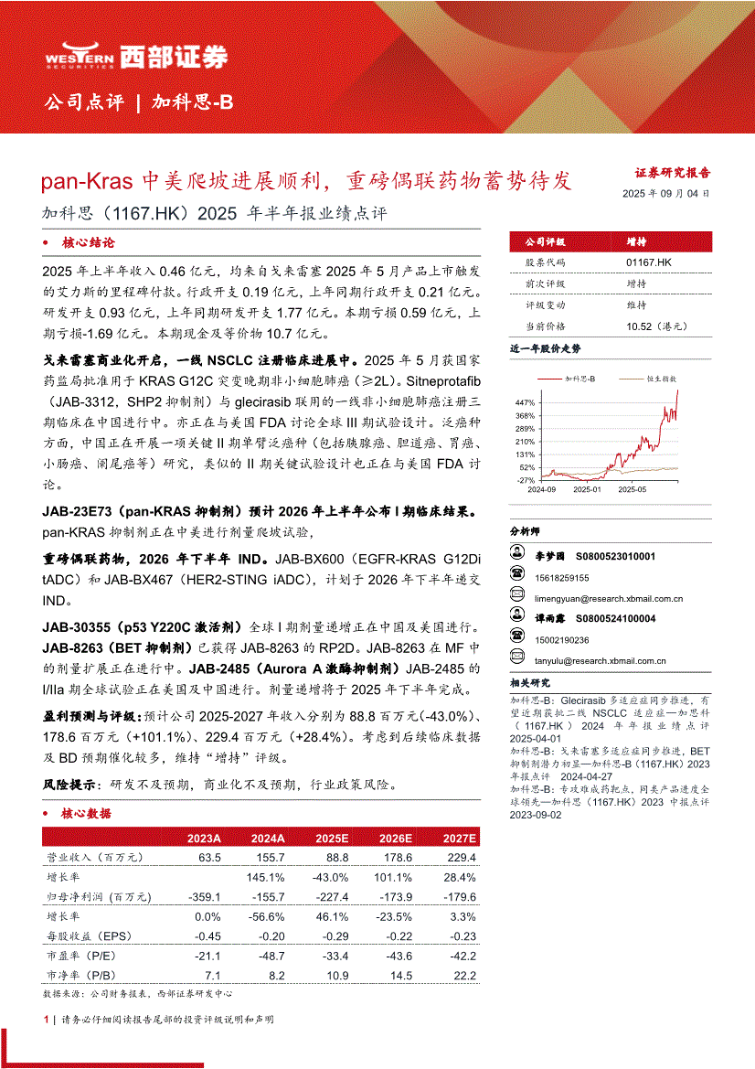 加科思:西部证券-加科思-1167.HK-2025年半年报业绩点评:pan~Kras中美爬坡进展顺利,重磅偶联药物蓄势待发-250904