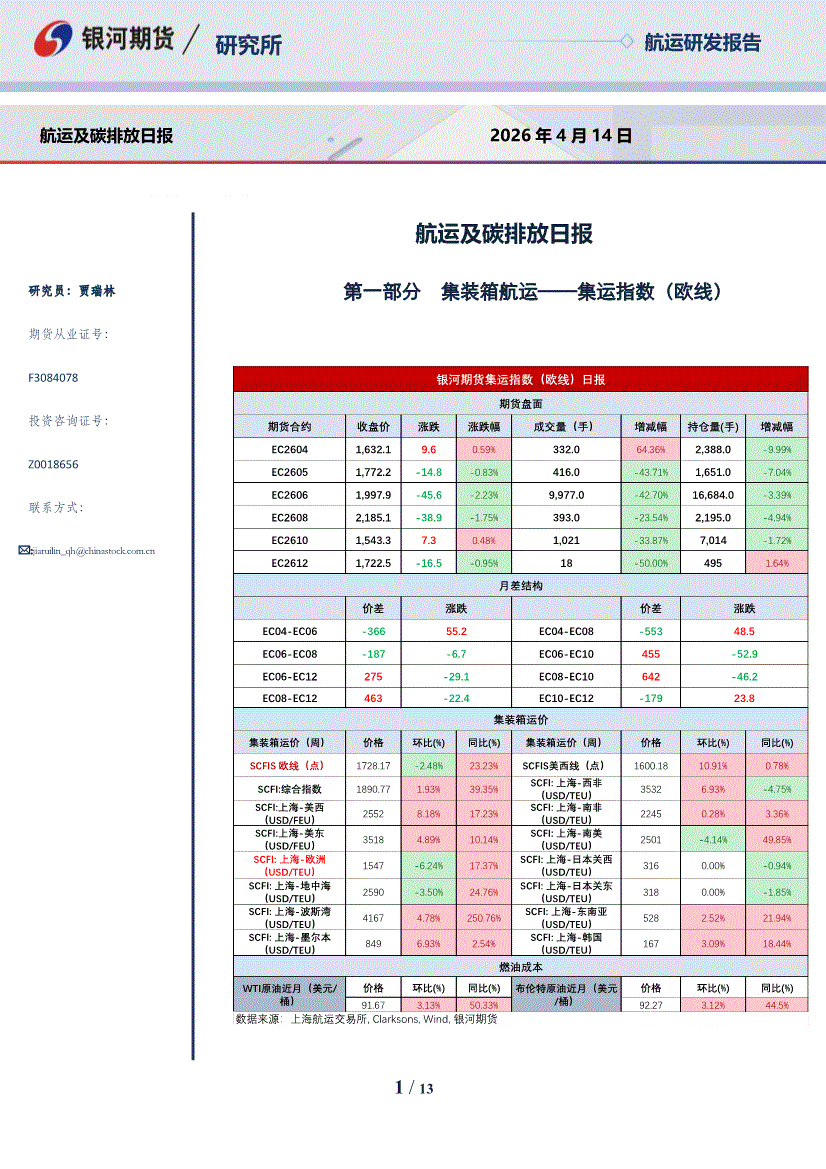 银河期货-航运及碳排放日报-260414