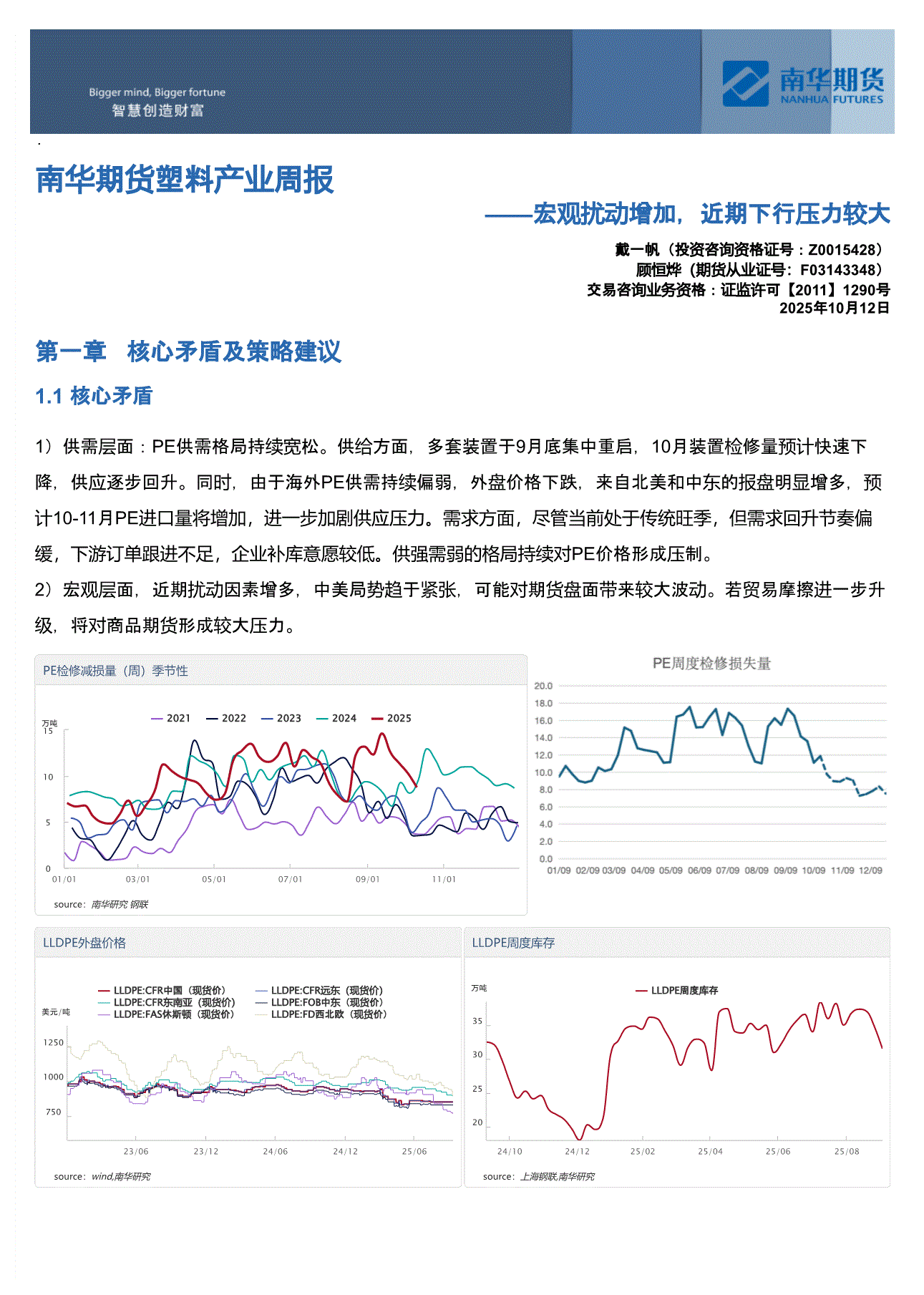 南华期货-塑料产业周报:宏观扰动增加,近期下行压力较大-251012