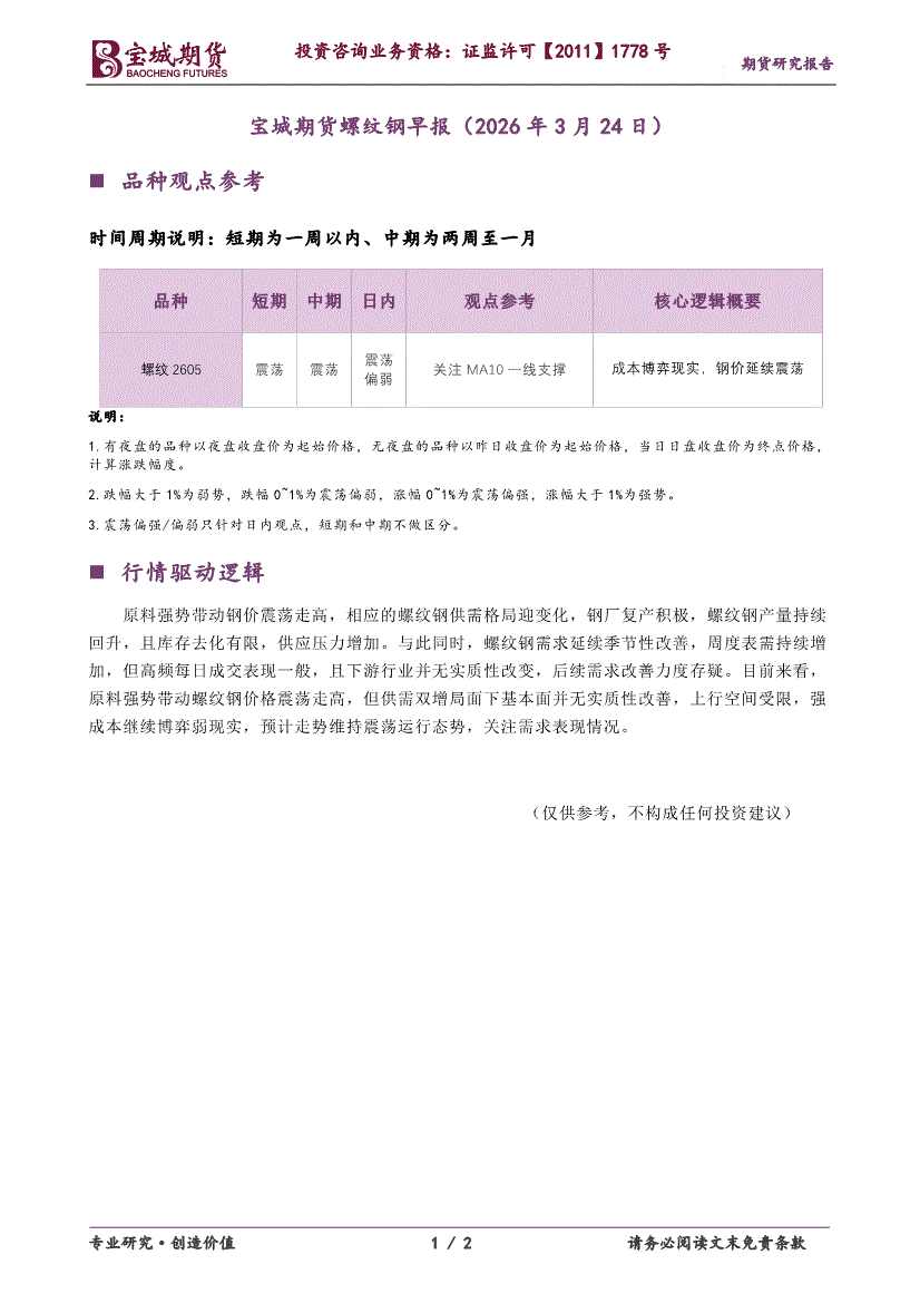 宝城期货-钢材&铁矿石日报:产业格局弱稳,钢矿高位震荡-260326