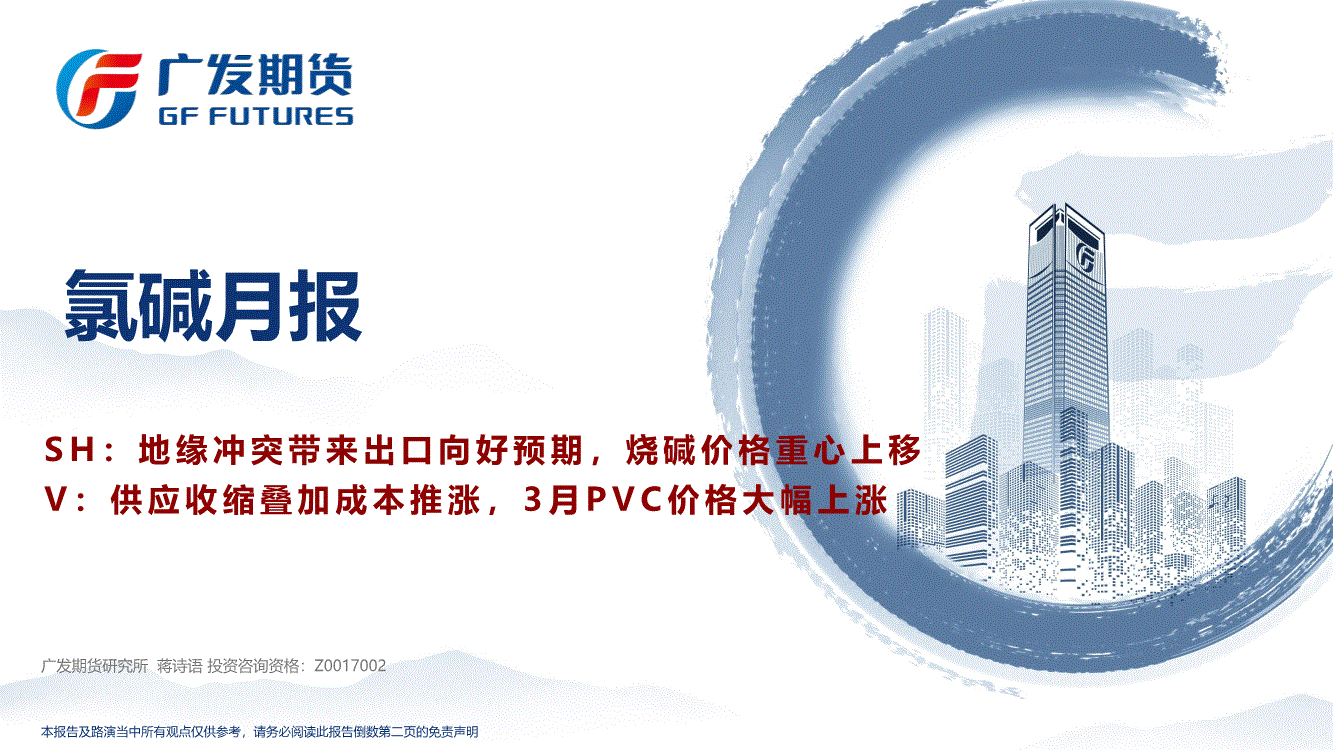 广发期货-氯碱月报:SH,地缘冲突带来出口向好预期,烧碱价格重心上移,V,供应收缩叠加成本推涨,3月PVC价格大幅上涨-260330