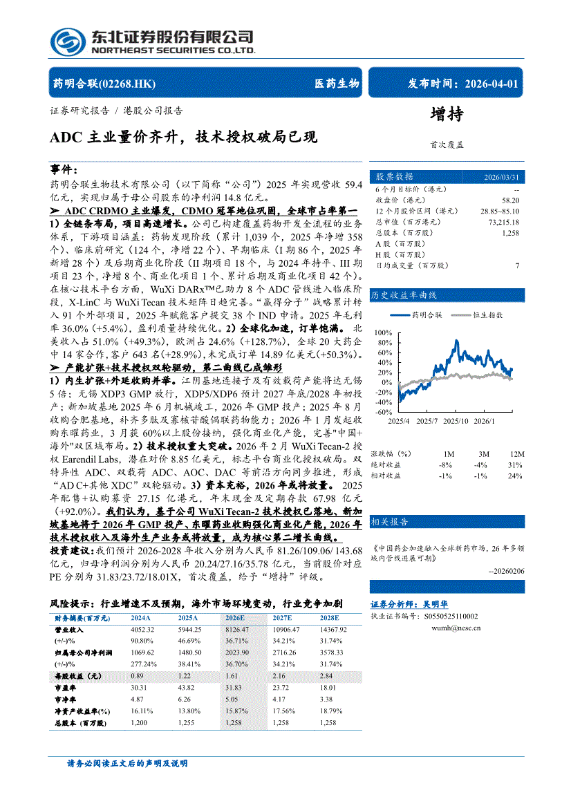 药明合联:东北证券-药明合联-2268.HK-ADC主业量价齐升,技术授权破局已现-260401