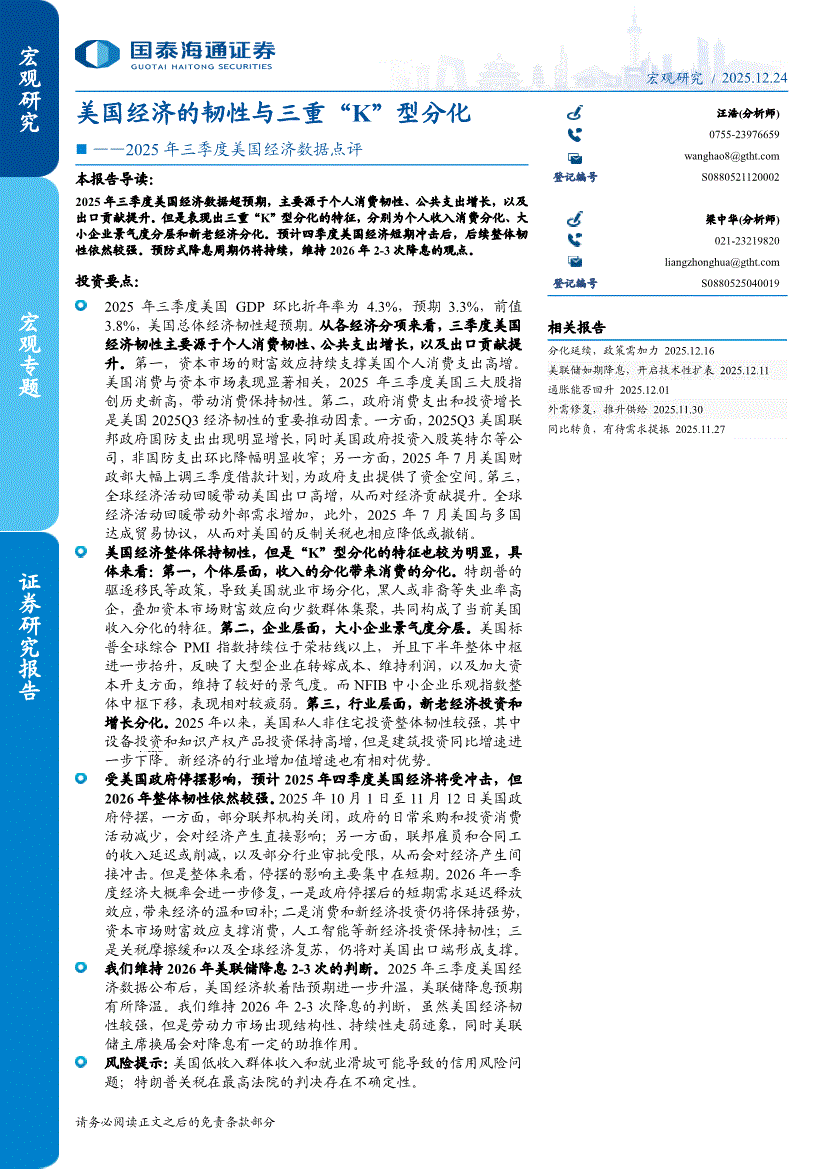 国泰海通证券-2025年三季度美国经济数据点评:美国经济的韧性与三重“K”型分化-251224