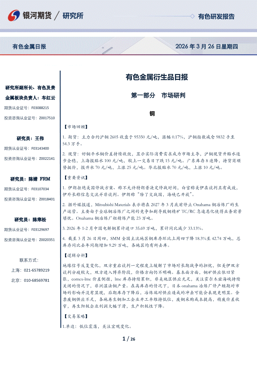 银河期货-铜周报:地缘政治风险增加,铜价陷入震荡-260315